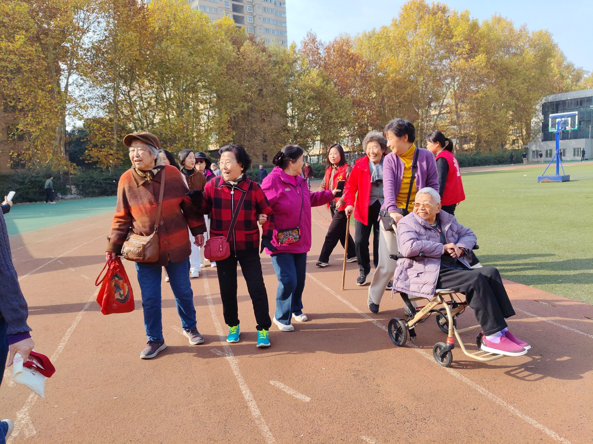 各校区活动现场气氛热烈,老同志们精神矍铄、步履从容,或结伴畅谈,或驻足赏景,在欢声笑语中感受冬日暖意。年近八十的退休教师王老师感慨:“活动组织得贴心周到,既活动了筋骨,又见到了老朋友,心里特别温暖!”