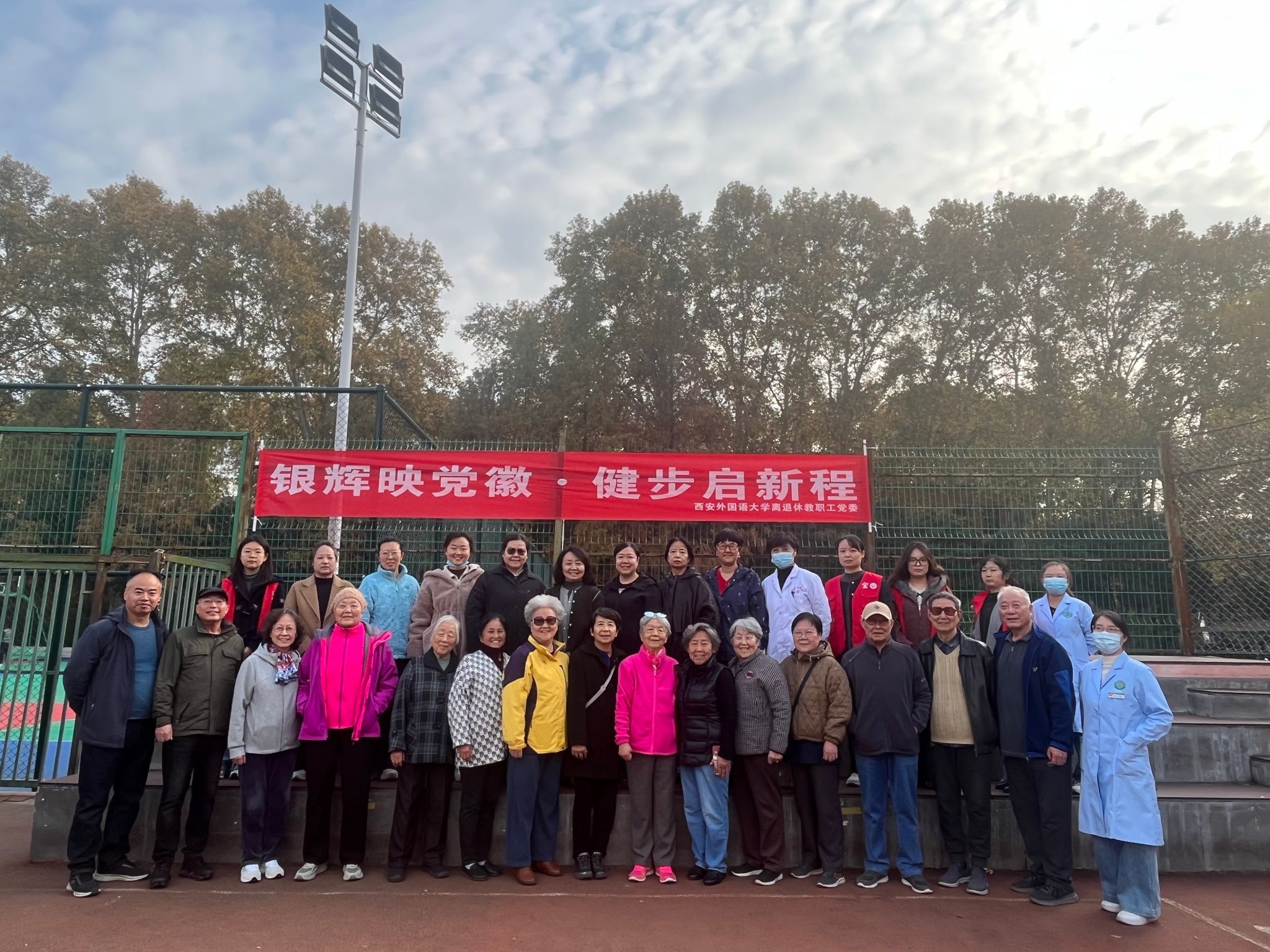 为丰富离退休老同志的精神文化生活,倡导健康生活方式,11月12日,离退处以“银辉映党徽·健步启新程”为主题,在雁塔、长安、振华三校区同步举行冬季健步走活动,400余名老同志热情参与。